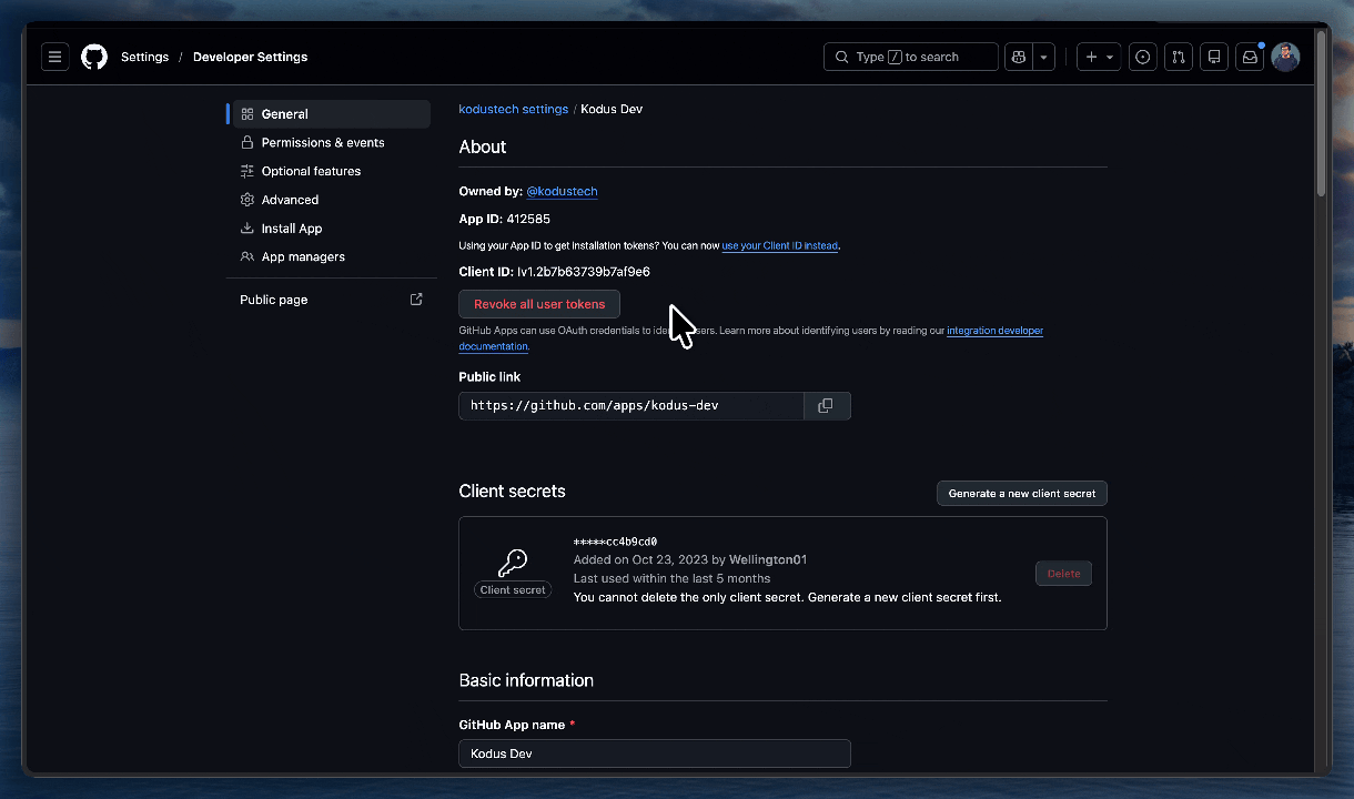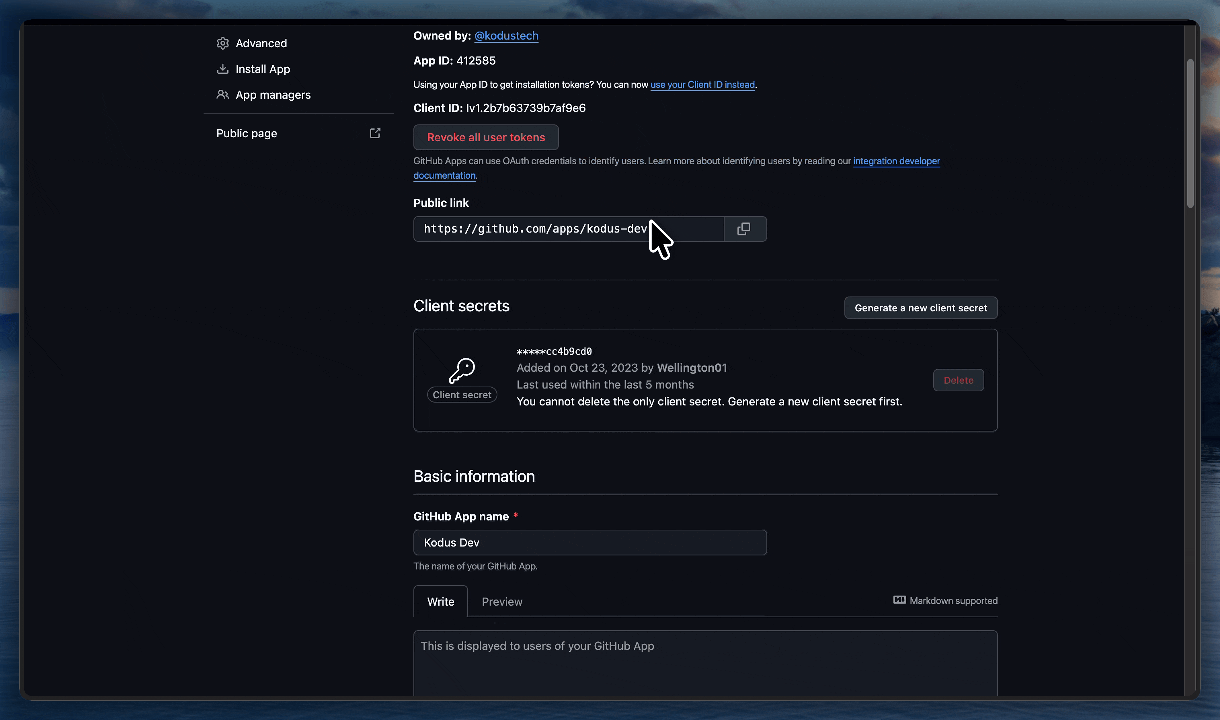 Now you need to get the credentials generated by GitHub and add them to your Kodus environment variables.
